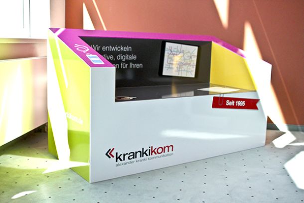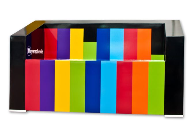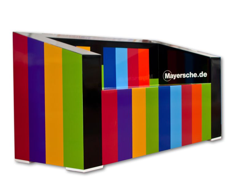 Das bunte Erscheinungsbild und die einladende Sitzgelegenheit, bilden die perfekte Kombination aus gut platzierter Werbung und einem Ruhepunkt, während einer anstrengenden Shoppingtour.
